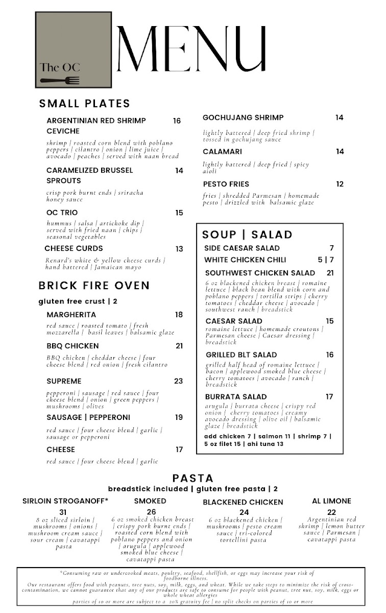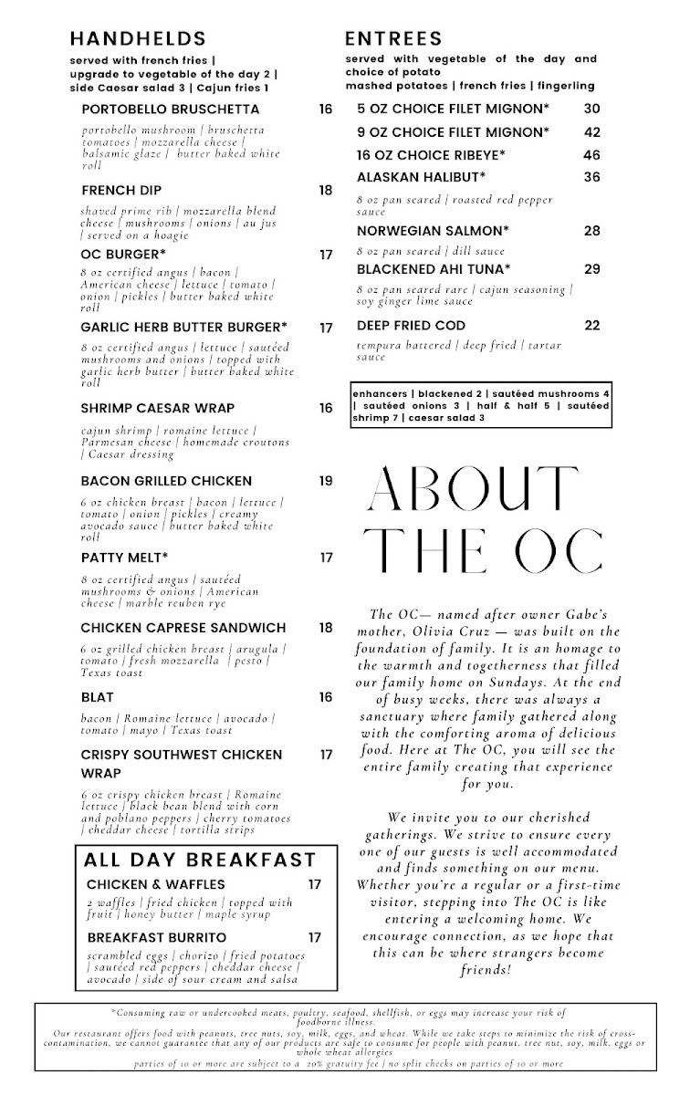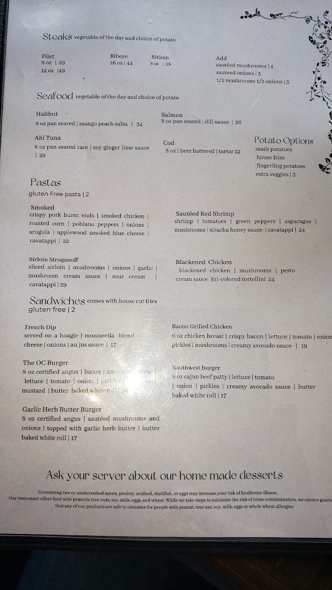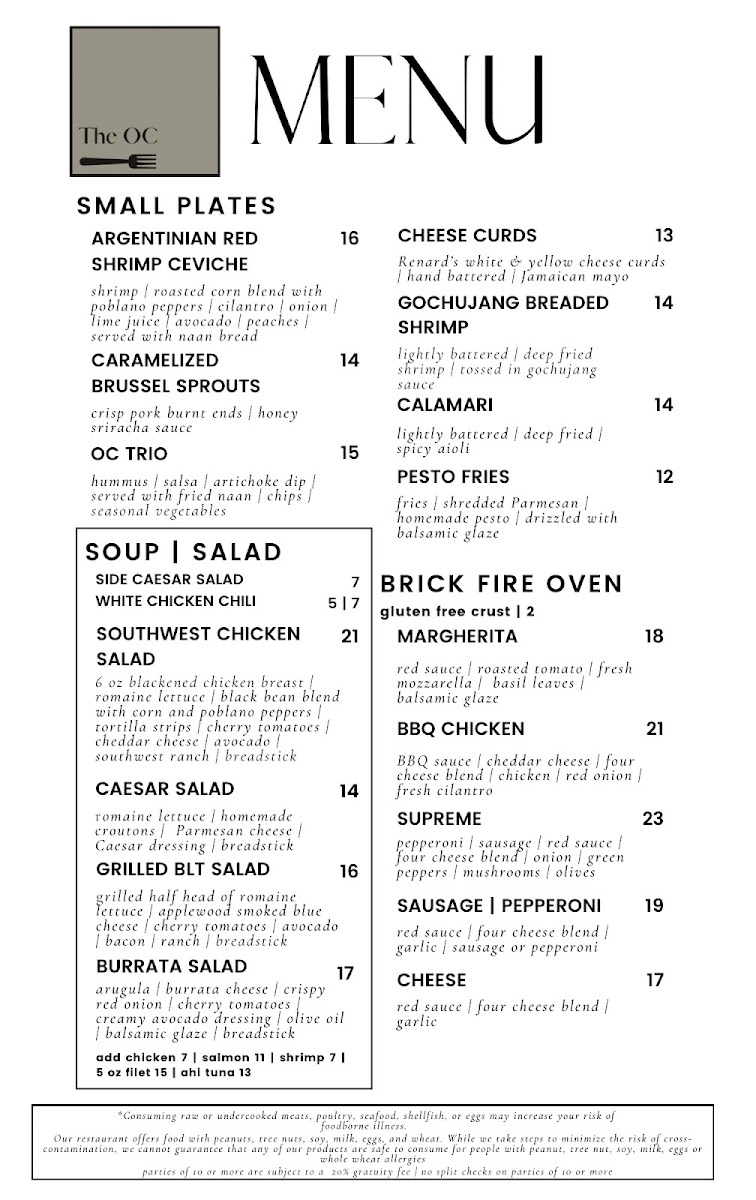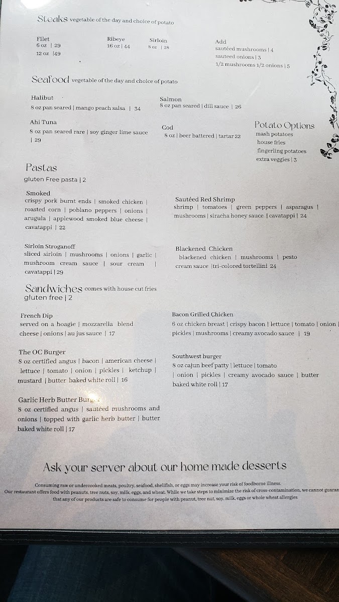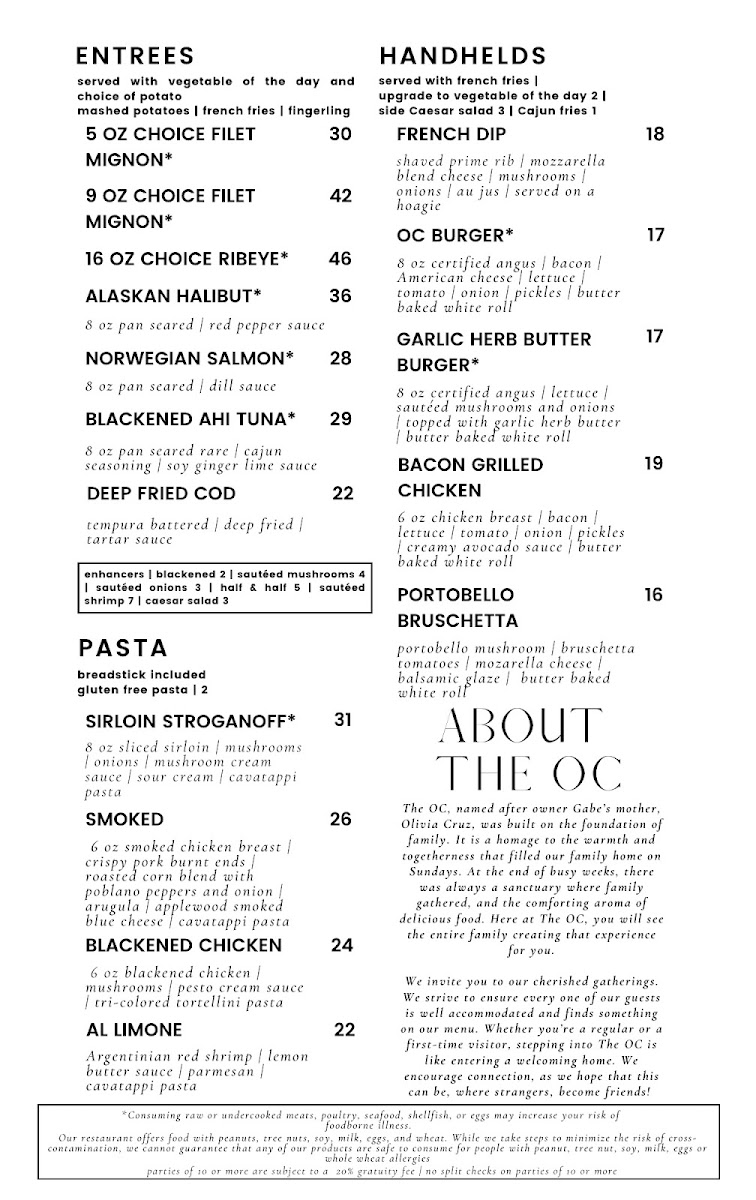 Overall, The Oc’s menu offers a perfect mix of comfort, flavor, and variety, ensuring there's something for every taste and every occasion.